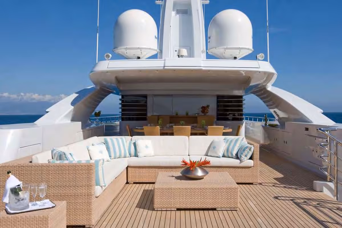 Maraya is a 54.2-meter full-displacement motor yacht built by CRN (Ferretti Group) in 2008 and refitted to an exceptional standard in 2023. Spanning five decks and offering 887 GT of interior volume, she blends timeless Italian design by Zuccon International with modern comfort and wide-ranging accessibility, including an elevator serving all decks and wheelchair-friendly features. Accommodating 12 guests in six luxurious cabins—highlighted by a full-beam master suite with a private sea-view terrace—Maraya also supports a professional crew of 15. Her elegant interiors include a sky lounge with cinema and games area, and a wellness suite with a gym, sauna, massage room, and beauty salon. Outdoor highlights feature a jacuzzi with sunpads, multiple alfresco dining and sunbathing zones, and a beach club. Powered by twin Caterpillar engines, she cruises at 13 knots with a range of 3,800 nm. Her comprehensive refit included AV/IT upgrades, new furnishings, and spa enhancements. With a strong charter history and extensive water toy lineup—jet skis, kayaks, tenders, dive gear, and more—Maraya is an ideal choice for large groups or families seeking a luxurious, entertainment-rich Mediterranean charter.
