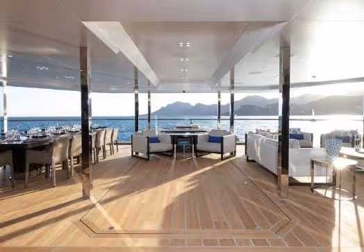 Bold is equipped with a dedicated gym, outdoor cinema, and a helipad, catering to every desire. Whether seeking adventure or tranquility, this yacht promises an extraordinary journey tailored to your every whim.