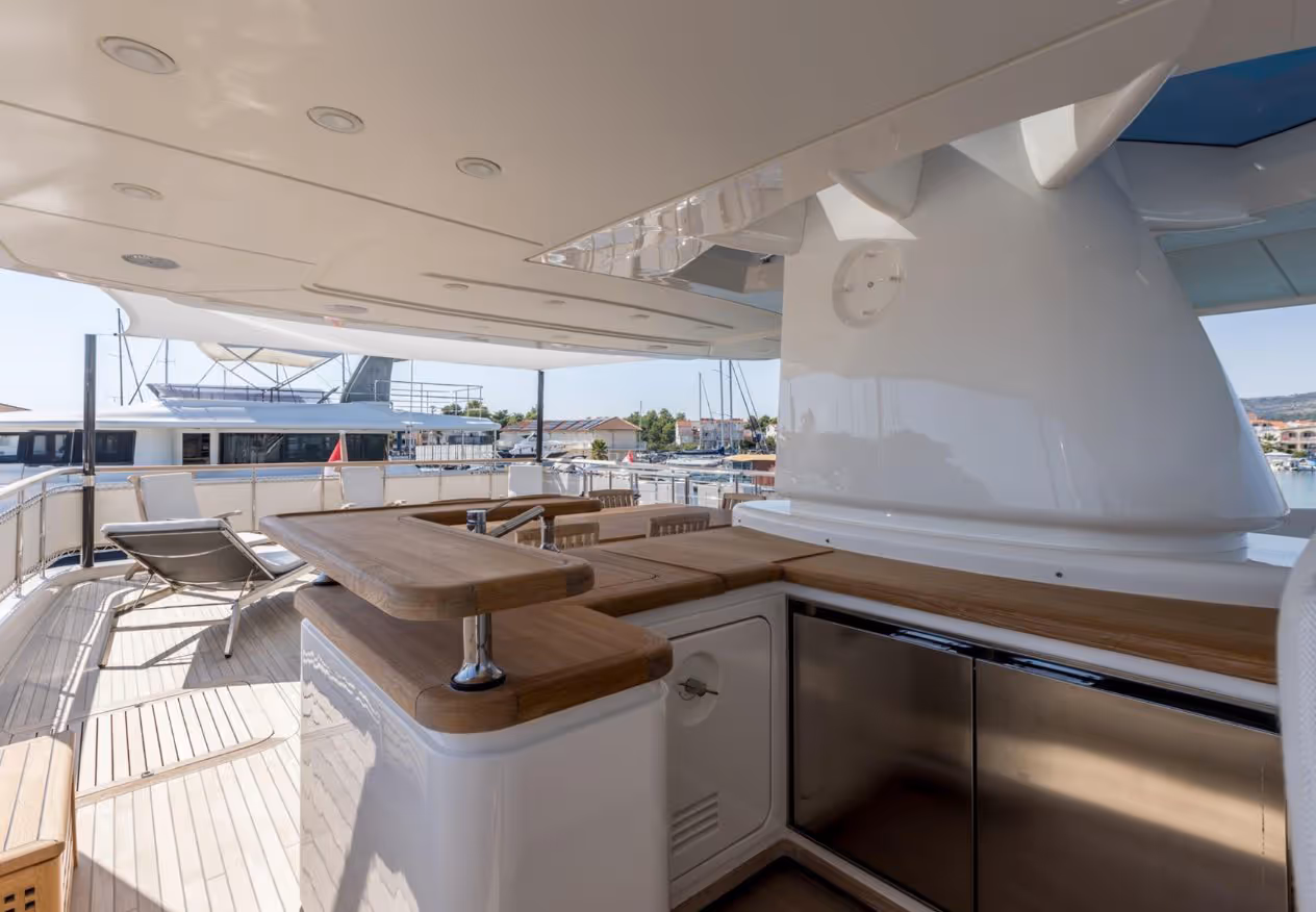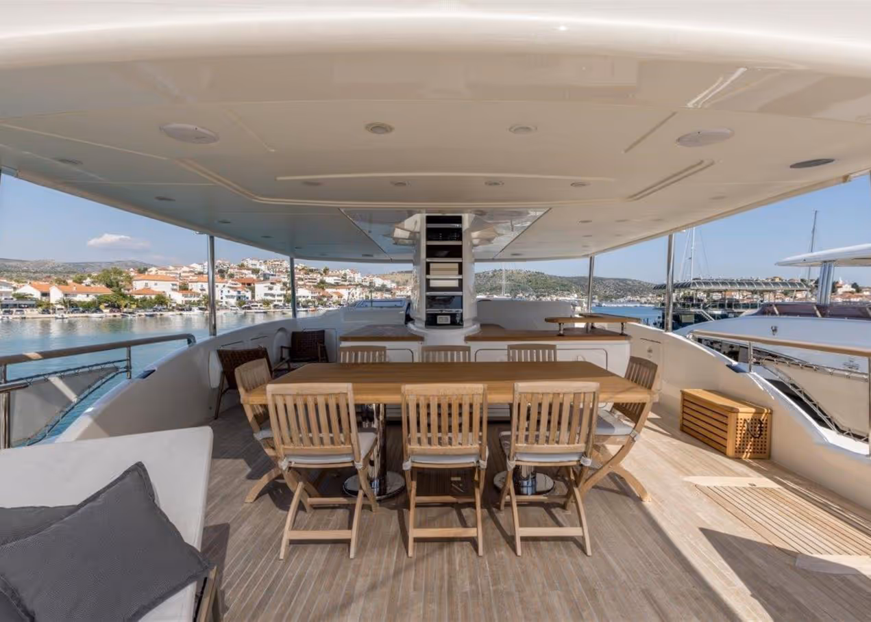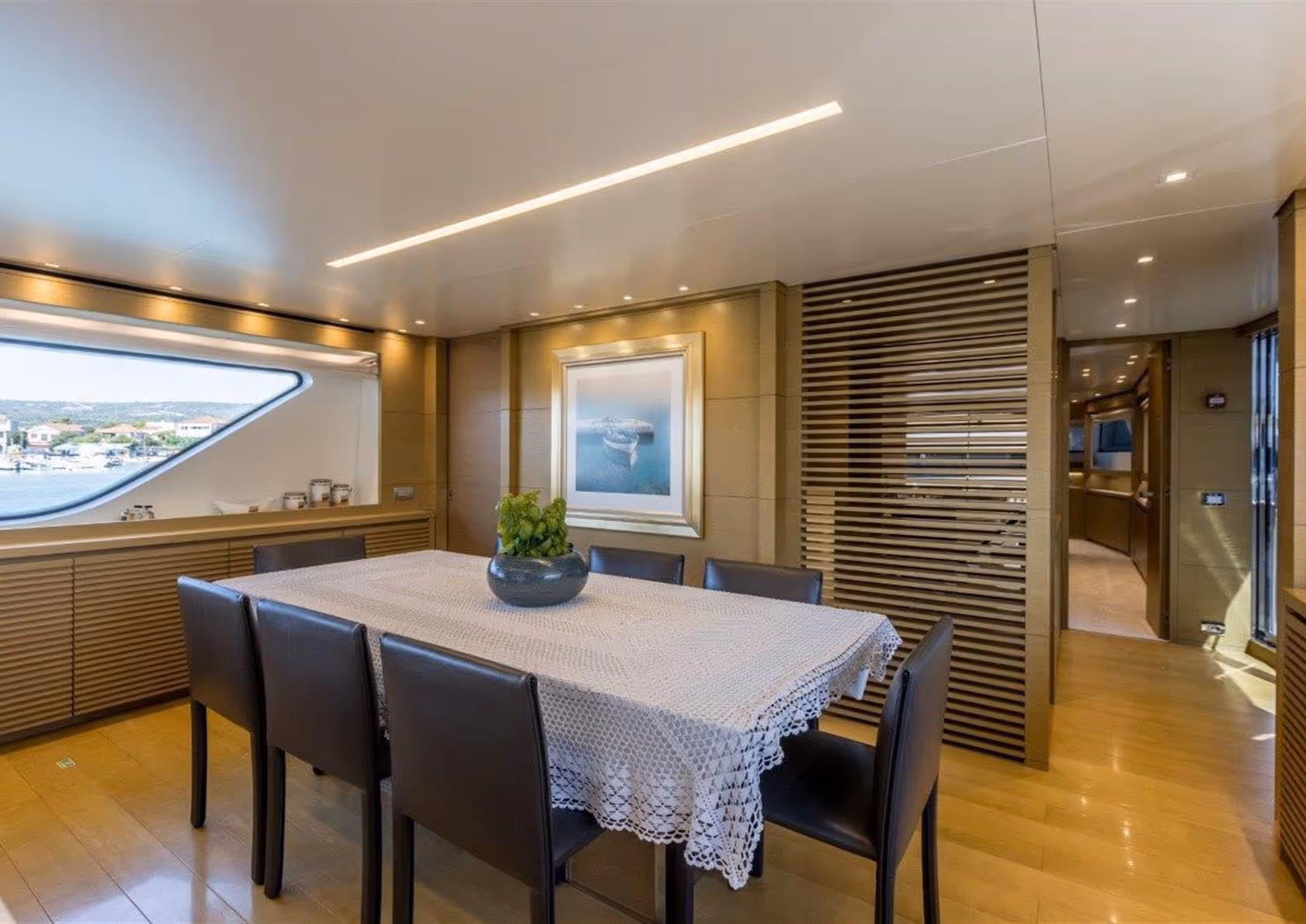 Whether you seek relaxation or adventure, she is your perfect escape. With a fuel capacity of 16,000 liters and 2,600 liters of water, she’s ready for extended voyages. Step aboard and immerse yourself in the luxury and style that only this remarkable yacht can offer.