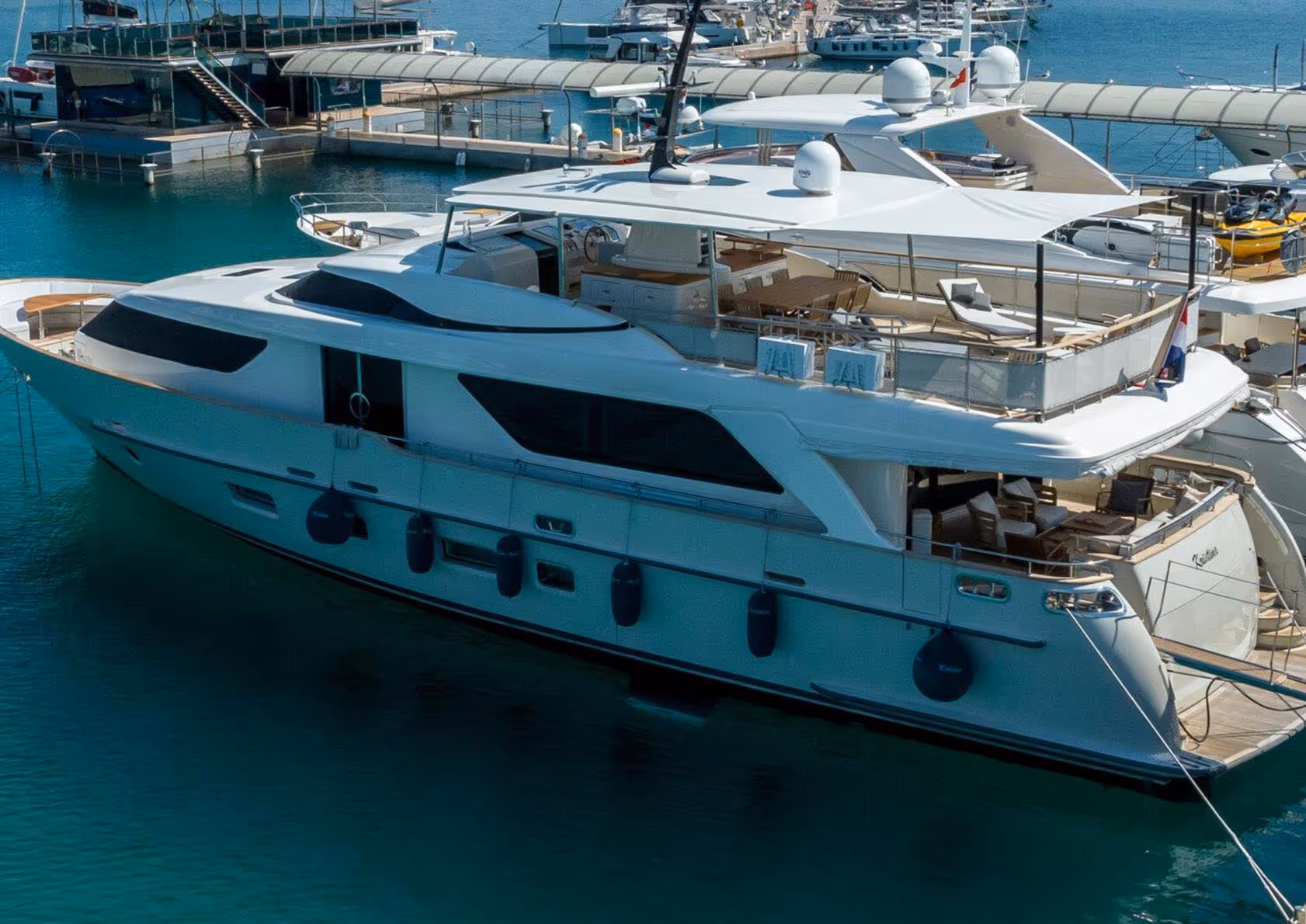 Welcome aboard this exquisite 27.6m motor yacht, crafted by the renowned Italian builder Sanlorenzo in 2013. With sleek lines designed by Francesco Paszkowski, she seamlessly combines elegance and performance. Accommodating up to 8 guests and 4 crew members, she promises an unforgettable cruising experience.