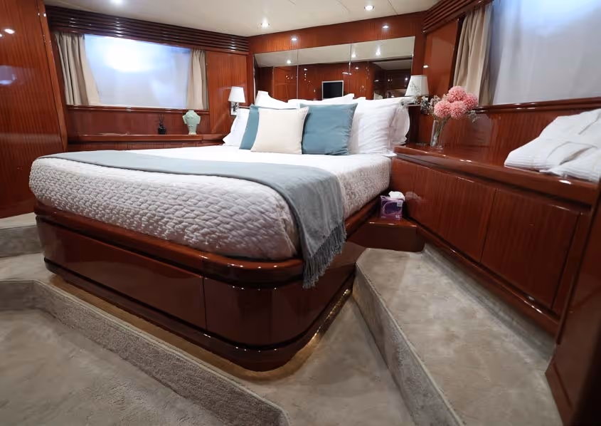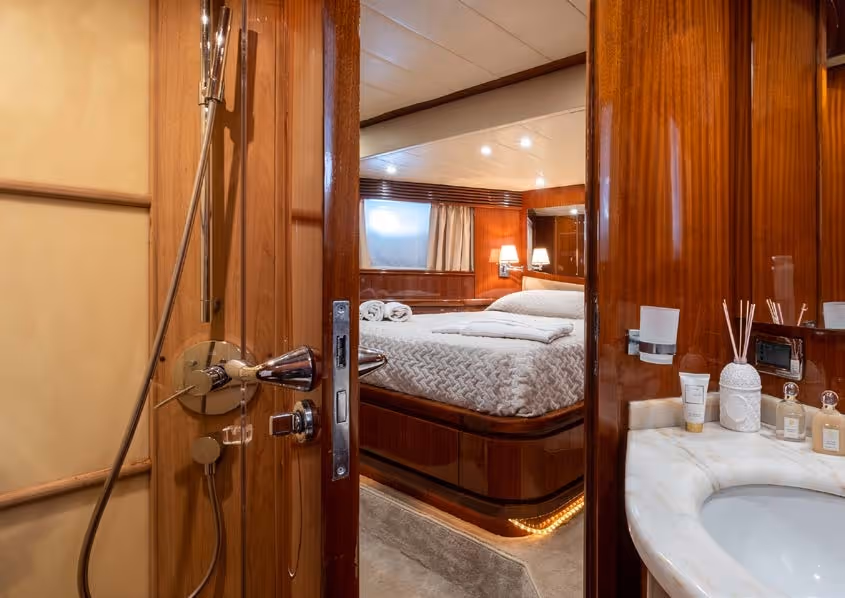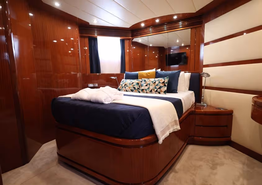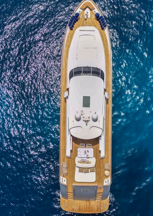 Eacos is a 26m luxury motor yacht built by Tecnomar in 2003, offering dynamic performance with a cruising speed of 30 knots.